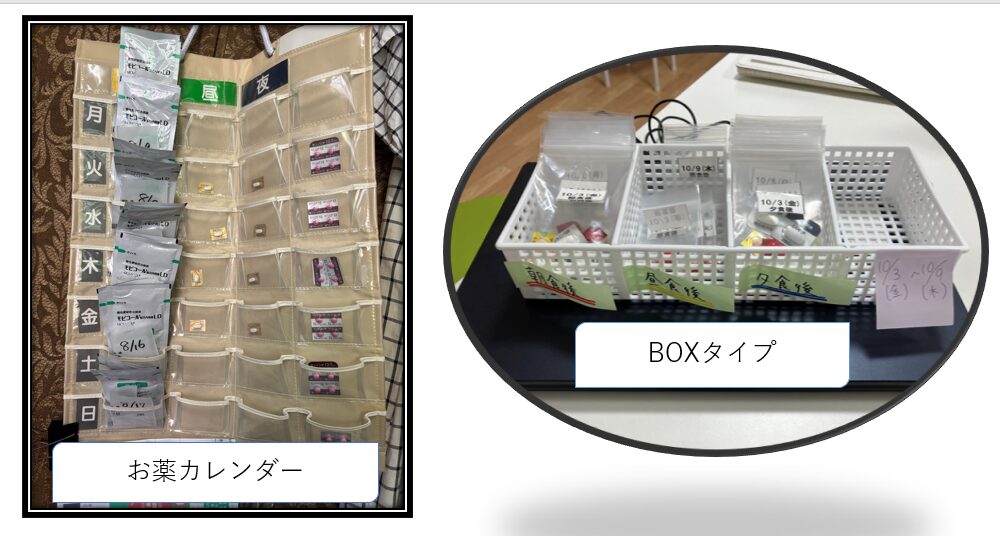 こちらは1週間分のお薬を、利用者さんの状況に合わせて、